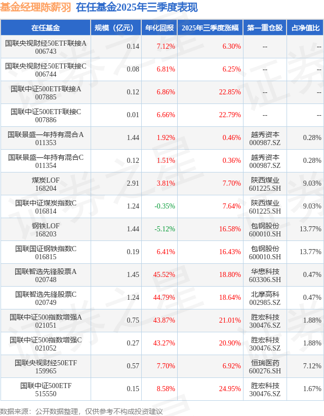 证券之星消息,日前国联中证500ETF基金公布三季报,2025年三季度最新规模0.15亿元,季度净值涨幅为24.95%。