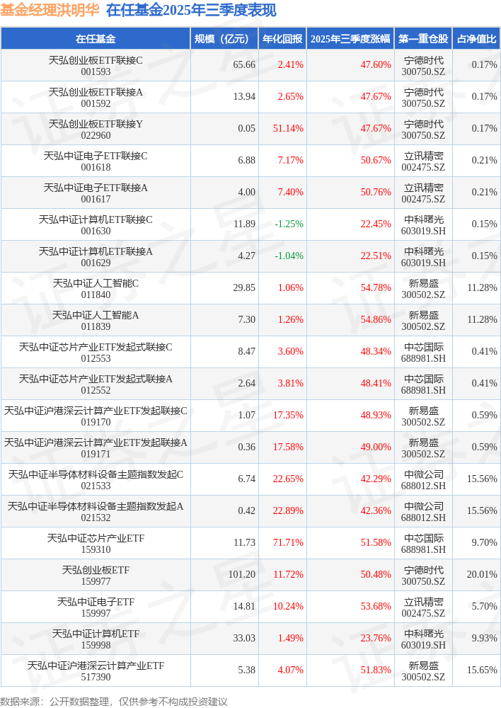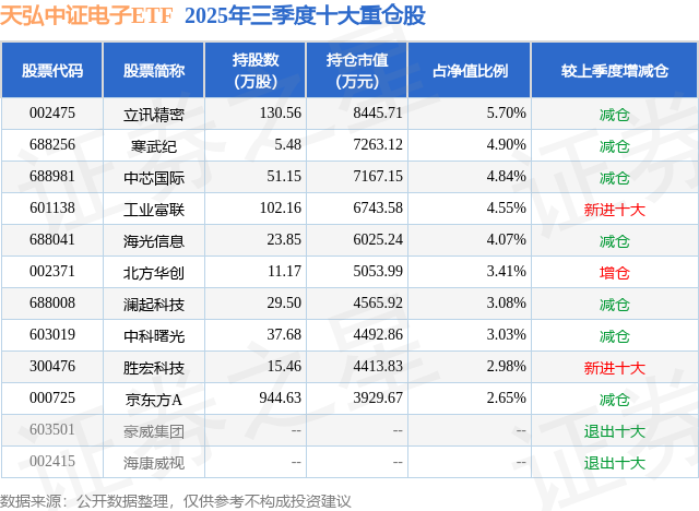 证券之星消息,日前天弘中证电子ETF基金公布三季报,2025年三季度最新规模14.81亿元,季度净值涨幅为53.68%。