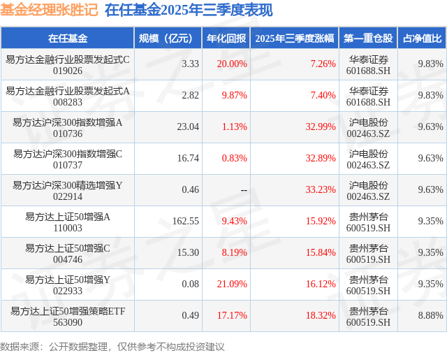 证券之星消息,日前易方达上证50增强策略ETF基金公布三季报,2025年三季度最新规模0.49亿元,季度净值涨幅为18.32%。