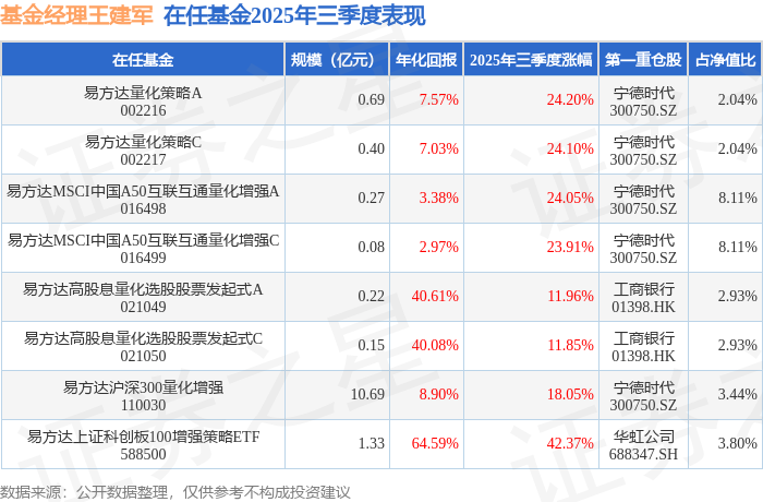易方达上证科创板100增强策略ETF现任基金经理为殷明 王建军。其中在任基金经理王建军已从业9年又340天,2025年4月24日正式接手管理易方达上证科创板100增强策略ETF,任职期间累计回报为43.62%。目前还管理着8只基金产品(包括A类和C类),其中本季度表现最佳的基金为易方达上证科创板100增强策略ETF(588500),季度净值涨幅为42.37%。