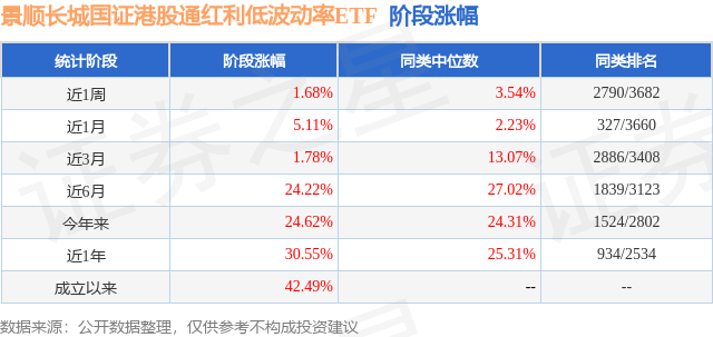 证券之星消息,日前景顺长城国证港股通红利低波动率ETF基金公布三季报,2025年三季度最新规模3.31亿元,季度净值涨幅为4.62%。