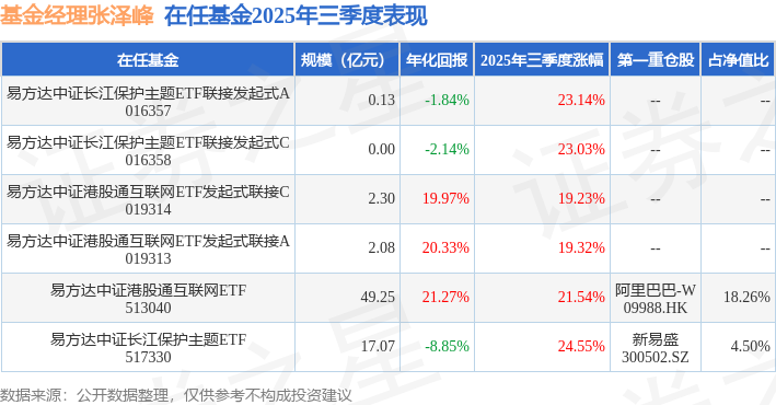 证券之星消息,日前易方达中证长江保护主题ETF基金公布三季报,2025年三季度最新规模17.07亿元,季度净值涨幅为24.55%。