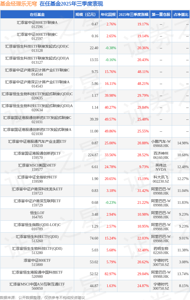 汇添富恒生科技ETF(QDII)现任基金经理为乐无穹。其中在任基金经理乐无穹已从业6年又199天,2022年8月31日正式接手管理汇添富恒生科技ETF(QDII),任职期间累计回报为56.61%。目前还管理着23只基金产品(包括A类和C类),其中本季度表现最佳的基金为汇添富中证沪港深云计算产业ETF联接A(014543),季度净值涨幅为48.21%。