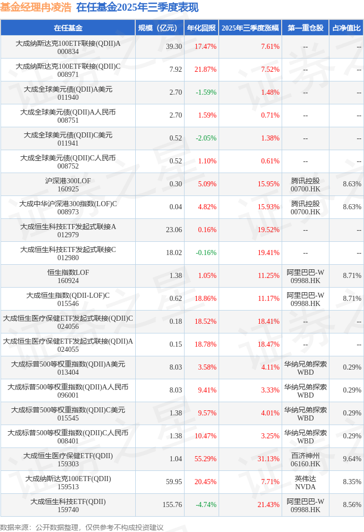 证券之星消息,日前大成恒生科技ETF(QDII)基金公布三季报,2025年三季度最新规模155.76亿元,季度净值涨幅为21.43%。