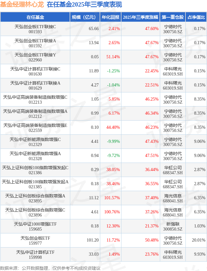 证券之星消息,日前天弘创业板ETF基金公布三季报,2025年三季度最新规模101.2亿元,季度净值涨幅为50.48%。