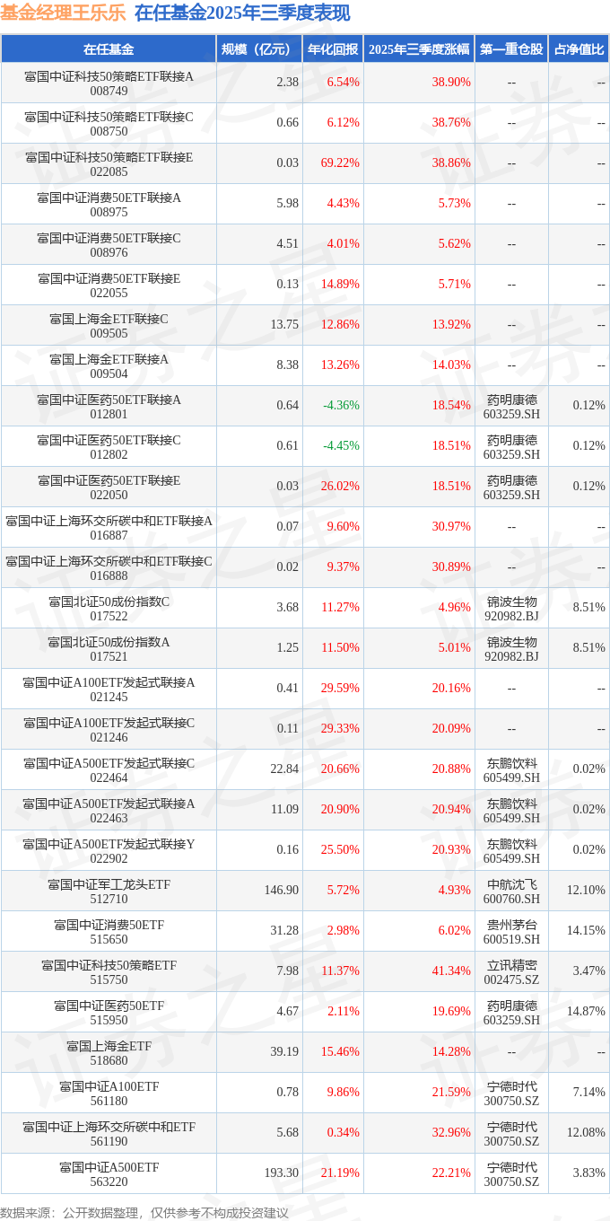 富国中证消费50ETF现任基金经理为王乐乐。其中在任基金经理王乐乐已从业10年又83天,2019年10月14日正式接手管理富国中证消费50ETF,任职期间累计回报为19.43%。目前还管理着28只基金产品(包括A类和C类),其中本季度表现最佳的基金为富国中证科技50策略ETF(515750),季度净值涨幅为41.34%。
