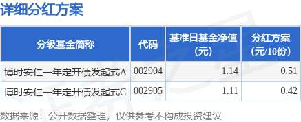 证券之星消息,11月7日发布《博时安仁一年定期开放债券型发起式证券投资基金分红公告》。本次分红为2025年度的第2次分红。公告显示,本次分红的收益分配基准日为11月11日,详细分红方案如下: