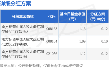 证券之星消息,11月12日发布《南方标普中国A股大盘红利低波50交易型开放式指数证券投资基金联接基金分红公告》。本次分红为2025年度第10次分红。公告显示,本次分红的收益分配基准日为10月10日,详细分红方案如下: