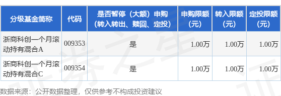 证券之星消息,11月14日浙商基金管理有限公司发布《浙商科技创新一个月滚动持有混合型证券投资基金限制大额申购(含定期定额投资)及转换转入业务的公告》。公告中提示,为保护基金份额持有人利益,自2025年11月17日起浙商科技创新一个月滚动持有混合型证券投资基金限制大额申购(含定期定额投资)及转换转入业务,申购、转换转入上限金额为1.0万元,下属分级基金调整明细如下: