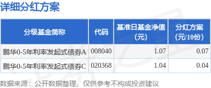 证券之星消息,11月19日发布《鹏华基金管理有限公司关于鹏华0-5年利率债债券型发起式证券投资基金2025年第4次分红公告》。本次分红为2025年第4次分红。公告显示,本次分红的收益分配基准日为11月11日,详细分红方案如下: