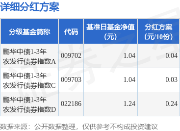 证券之星消息,11月19日发布《鹏华基金管理有限公司关于鹏华中债1-3年农发行债券指数证券投资基金2025年第4次分红公告》。本次分红为2025年第4次分红。公告显示,本次分红的收益分配基准日为11月11日,详细分红方案如下: