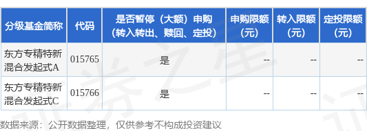 证券之星消息,11月25日东方基金管理股份有限公司发布《东方专精特新混合型发起式证券投资基金暂停申购、转换转入、定期定额投资公告》。公告中提示,为了保护基金份额持有人利益,自2025年11月26日起东方专精特新混合型发起式证券投资基金暂停申购、转换转入、定期定额投资,下属分级基金调整明细如下: