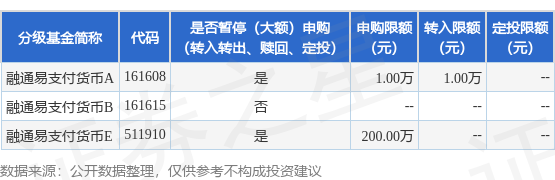 证券之星消息,11月27日融通基金管理有限公司发布《融通易支付货币市场证券投资基金调整大额申购、定期定额投资及转换转入业务的公告》。公告中提示,为保证本基金的稳定运作,保护现有基金份额持有人利益,自2025年11月27日起融通易支付货币市场证券投资基金调整大额申购、定期定额投资及转换转入业务,下属分级基金调整明细如下: