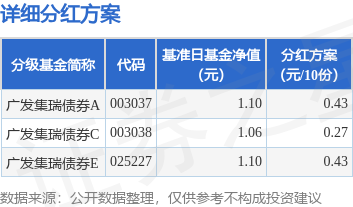 证券之星消息,11月28日发布《广发集瑞债券型证券投资基金分红公告》。本次分红为2025年度的第1次分红。公告显示,本次分红的收益分配基准日为11月11日,详细分红方案如下: