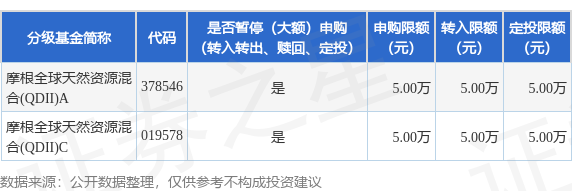 证券之星消息,11月28日摩根基金管理(中国)有限公司发布《摩根全球天然资源混合型证券投资基金(QDII)调整大额申购、定期定额投资及转换转入业务的公告》。公告中提示,为保证本基金的稳定运作,保护基金份额持有人利益,自2025年12月1日起摩根全球天然资源混合型证券投资基金(QDII)调整大额申购、定期定额投资及转换转入业务,下属分级基金调整明细如下: