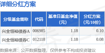 证券之星消息,12月3日发布《兴全恒裕债券型证券投资基金分红公告》。2025年第1次。公告显示,本次分红的收益分配基准日为11月11日,详细分红方案如下: