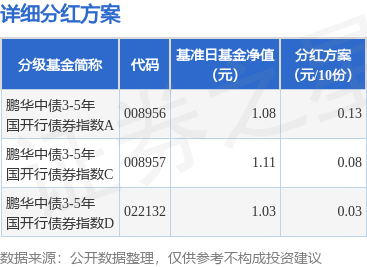 证券之星消息,12月4日发布《鹏华基金管理有限公司关于鹏华中债3-5年国开行债券指数证券投资基金2025年第4次分红公告》。本次分红为2025年第4次分红。公告显示,本次分红的收益分配基准日为12月12日,详细分红方案如下:
