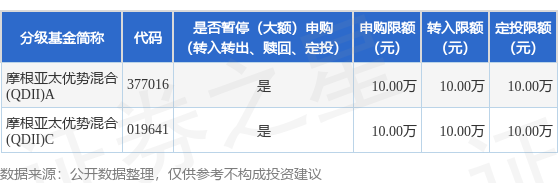 证券之星消息,12月9日摩根基金管理(中国)有限公司发布《摩根亚太优势混合型证券投资基金(QDII)调整大额申购、定期定额投资及转换转入业务的公告》。公告中提示,为保证本基金的稳定运作,保护基金份额持有人利益,自2025年12月9日起摩根亚太优势混合型证券投资基金(QDII)调整大额申购、定期定额投资及转换转入业务,下属分级基金调整明细如下: