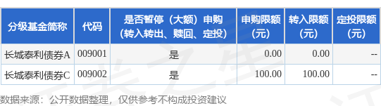 证券之星消息,12月9日长城基金管理有限公司发布《长城泰利纯债债券型证券投资基金调整申购、转换转入和定期定额投资业务限额的公告》。公告中提示,为保证基金的稳定运作,保护基金份额持有人利益,自2025年12月10日起长城泰利纯债债券型证券投资基金调整申购、转换转入和定期定额投资业务限额,下属分级基金调整明细如下: