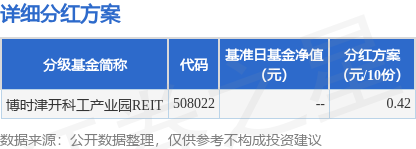 证券之星消息,12月12日发布《博时津开科工产业园封闭式基础设施证券投资基金分红公告》。本次分红为2025年度的第2次分红。公告显示,本次分红的收益分配基准日为9月9日,详细分红方案如下: