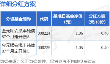 证券之星消息,12月12日发布《金元顺安泓丰纯债87个月定期开放债券型证券投资基金非货币市场基金分红公告》。2025年度的第1次分红。公告显示,本次分红的收益分配基准日为12月12日,详细分红方案如下: