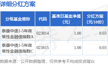 证券之星消息,12月19日发布《泰康中债1-5年政策性金融债指数证券投资基金2025年第一次分红公告》。本次分红为2025年度的第一次分红。公告显示,本次分红的收益分配基准日为12月12日,详细分红方案如下: