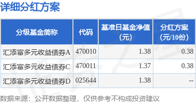 证券之星消息,12月19日发布《汇添富多元收益债券型证券投资基金收益分配公告》。本次分红为本基金2025年度第2次分红。公告显示,本次分红的收益分配基准日为12月12日,详细分红方案如下: