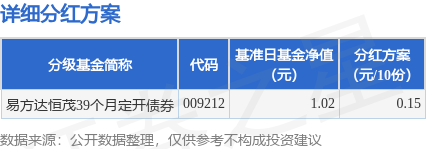 证券之星消息,12月19日发布《易方达恒茂39个月定期开放债券型发起式证券投资基金分红公告》。本次分红为2025年度的第2次分红。公告显示,本次分红的收益分配基准日为12月12日,详细分红方案如下: