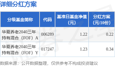 证券之星消息,12月24日发布《华夏养老目标日期2040三年持有期混合型基金中基金(FOF)第七次分红公告》。本次分红为2025年度的第1次分红。公告显示,本次分红的收益分配基准日为12月12日,详细分红方案如下: