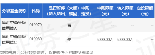 证券之星消息,12月24日博时基金管理有限公司发布《博时中高等级信用债债券型证券投资基金C类份额调整大额申购、转换转入、定期定额投资业务的公告》。公告中提示,为保护基金份额持有人利益,自2025年12月25日起博时中高等级信用债债券型证券投资基金C类份额调整大额申购、转换转入、定期定额投资业务,申购、转换转入上限金额为5000.0万元,下属分级基金调整明细如下: