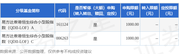 注:(1)易方达香港恒生综合小型股指数证券投资基金(LOF)(以下简称“本基金”)A类基金份额场内简称为港股小盘LOF。