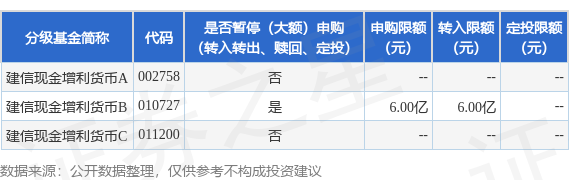 证券之星消息,12月29日建信基金管理有限责任公司发布《建信现金增利货币市场基金B类基金份额在中国建设银行销售渠道暂停大额申购、大额转换转入、定期定额投资公告》。公告中提示,None,自2025年12月30日起建信现金增利货币市场基金B类基金份额在中国建设银行销售渠道暂停大额申购、大额转换转入、定期定额投资,下属分级基金调整明细如下: