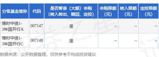证券之星消息,12月31日博时基金管理有限公司发布《博时中债1-3年国开行债券指数证券投资基金暂停大额申购、转换转入、定期定额投资业务的公告》。公告中提示,为保护基金份额持有人利益,自2025年12月31日起博时中债1-3年国开行债券指数证券投资基金暂停大额申购、转换转入、定期定额投资业务,申购、转换转入上限金额为500.0万元,下属分级基金调整明细如下: