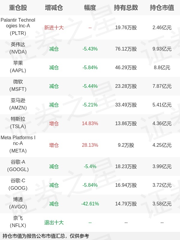 证券之星消息,1月22日华夏基金旗下赵宗庭管理的华夏纳斯达克100交易型开放式指数基金(QDII)公布年报,近1年净值增长率10.49%。与上一季度相比,该基金前十大重仓股新增Palantir Technologies Inc-A;其中英伟达持仓占比8.82%,为该基金第一大重仓股;奈飞等退出前十大重仓股;详细数据如下: