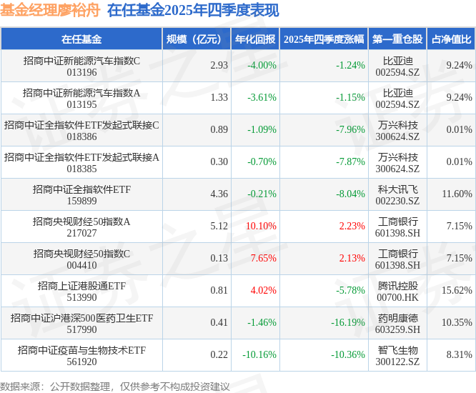 证券之星消息,日前招商中证沪港深500医药卫生ETF基金公布四季报,2025年四季度最新规模0.41亿元,季度净值涨幅为-16.19%。