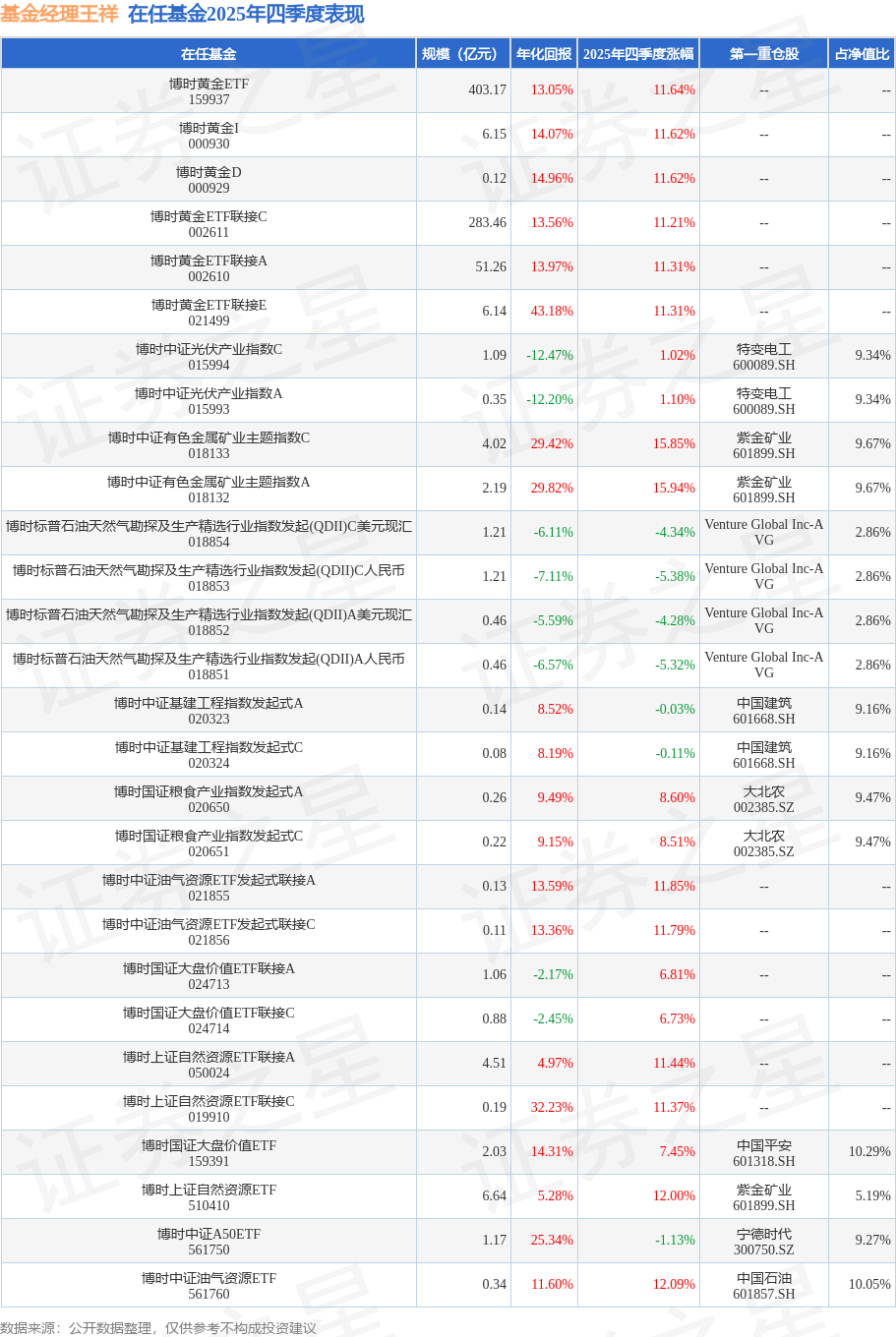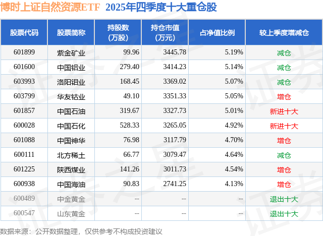 证券之星消息,日前博时上证自然资源ETF基金公布四季报,2025年四季度最新规模6.64亿元,季度净值涨幅为12.0%。