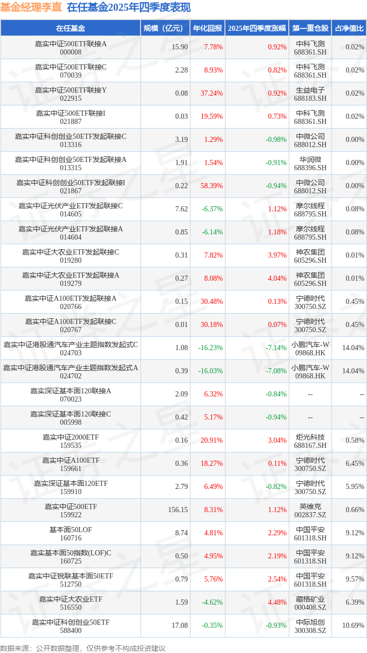 证券之星消息,日前嘉实中证科创创业50ETF基金公布四季报,2025年四季度最新规模17.08亿元,季度净值涨幅为-0.93%。
