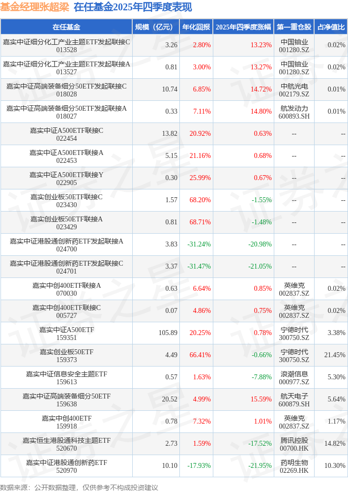 证券之星消息,日前嘉实中证高端装备细分50ETF基金公布四季报,2025年四季度最新规模20.52亿元,季度净值涨幅为15.59%。