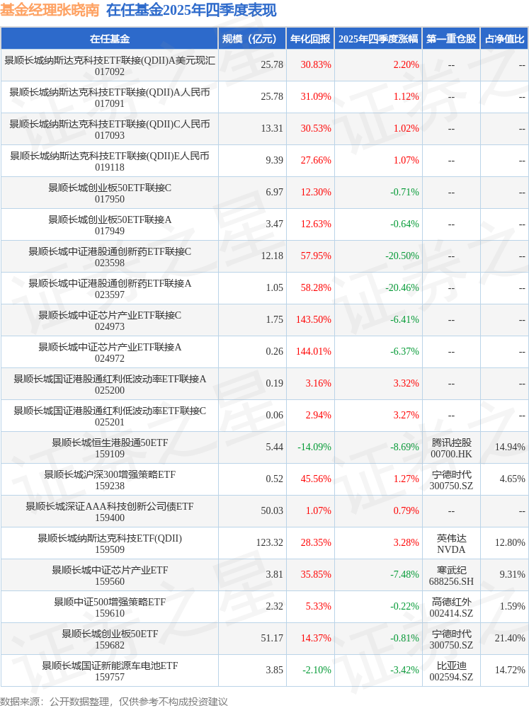 从基金规模来看,景顺中证500增强策略ETF基金2025年四季度公布的基金规模为2.32亿元,较上一期规模3.5亿元变化了-1.18亿元,环比变化了-33.84%。该基金最新一期资产配置为:股票占净值比98.41%,无债券类资产,现金占净值比1.99%。从基金持仓来看,该基金当季前十大股票仓位达14.19%,第一大重仓股为高德红外(002414),持仓占比为1.59%。