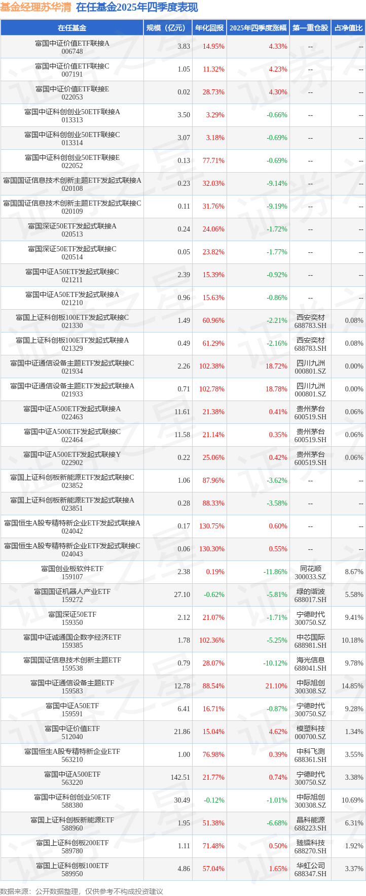证券之星消息,日前富国中证通信设备主题ETF基金公布四季报,2025年四季度最新规模12.78亿元,季度净值涨幅为21.1%。