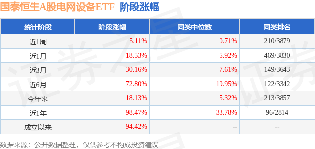 从业绩表现来看,国泰恒生A股电网设备ETF基金过去一年净值涨幅为98.47%,在同类基金中排名96/2814,同类基金过去一年净值涨幅中位数为33.78%。而基金过去一年的最大回撤为-14.22%,成立以来的最大回撤为-14.42%。