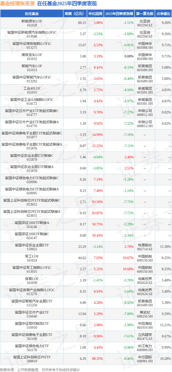 证券之星消息,日前富国上证科创板芯片ETF基金公布四季报,2025年四季度最新规模6.29亿元,季度净值涨幅为-8.46%。