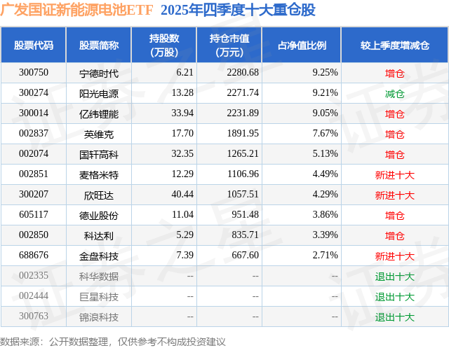 证券之星消息,日前广发国证新能源电池ETF基金公布四季报,2025年四季度最新规模2.47亿元,季度净值涨幅为-4.7%。