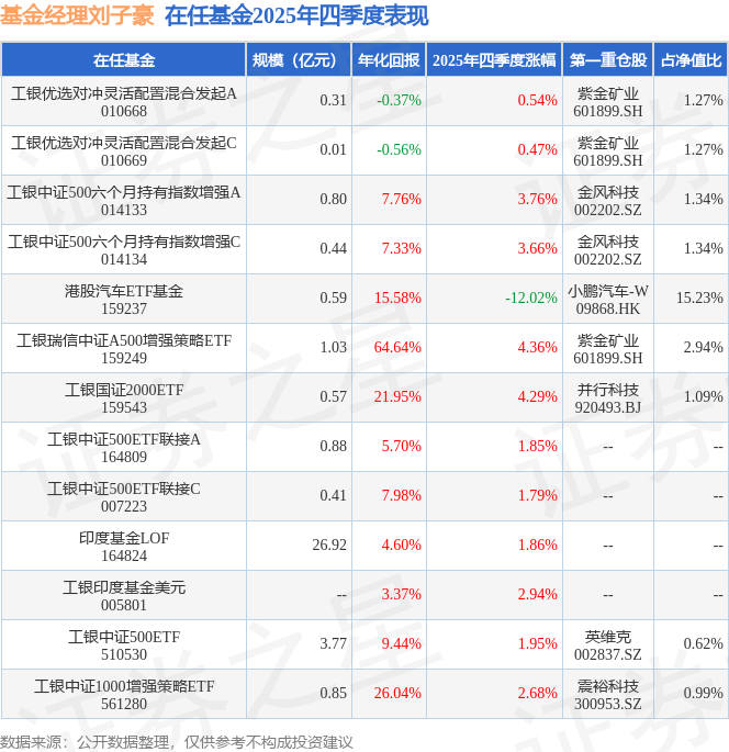 证券之星消息,日前工银中证1000增强策略ETF基金公布四季报,2025年四季度最新规模0.85亿元,季度净值涨幅为2.68%。