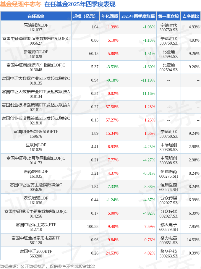 富国中证2000ETF现任基金经理为牛志冬。其中在任基金经理牛志冬已从业10年又258天,2025年7月11日正式接手管理富国中证2000ETF,任职期间累计回报为33.7%。目前还管理着18只基金产品(包括A类和C类),其中本季度表现最佳的基金为富国中证军工龙头ETF(512710),季度净值涨幅为7.59%。