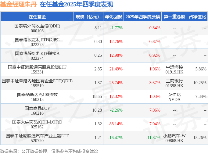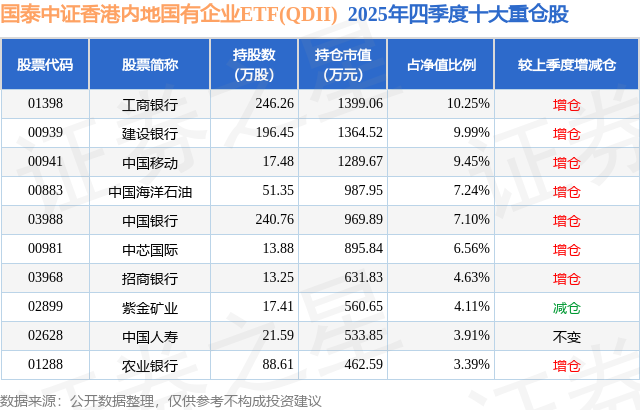 证券之星消息,日前国泰中证香港内地国有企业ETF(QDII)基金公布四季报,2025年四季度最新规模1.37亿元,季度净值涨幅为3.37%。