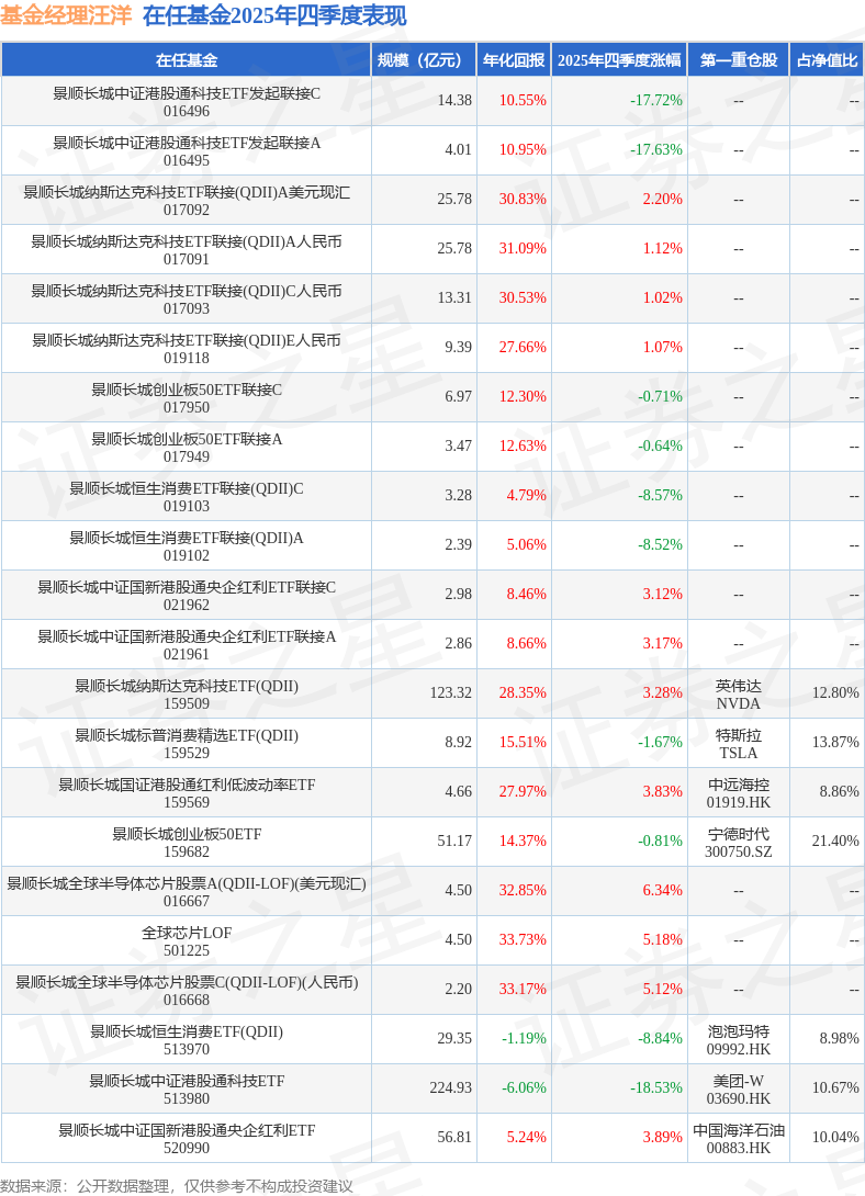 证券之星消息,日前景顺长城纳斯达克科技ETF(QDII)基金公布四季报,2025年四季度最新规模123.32亿元,季度净值涨幅为3.28%。