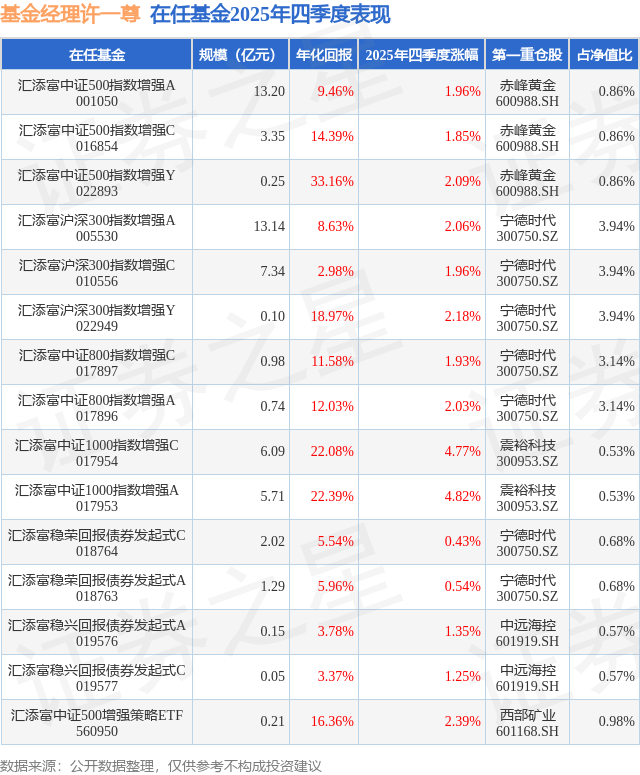 证券之星消息,日前汇添富中证500增强策略ETF基金公布四季报,2025年四季度最新规模0.21亿元,季度净值涨幅为2.39%。