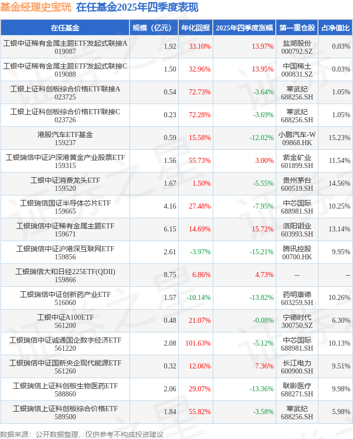 证券之星消息,日前工银瑞信中证国新央企现代能源ETF基金公布四季报,2025年四季度最新规模0.32亿元,季度净值涨幅为7.36%。