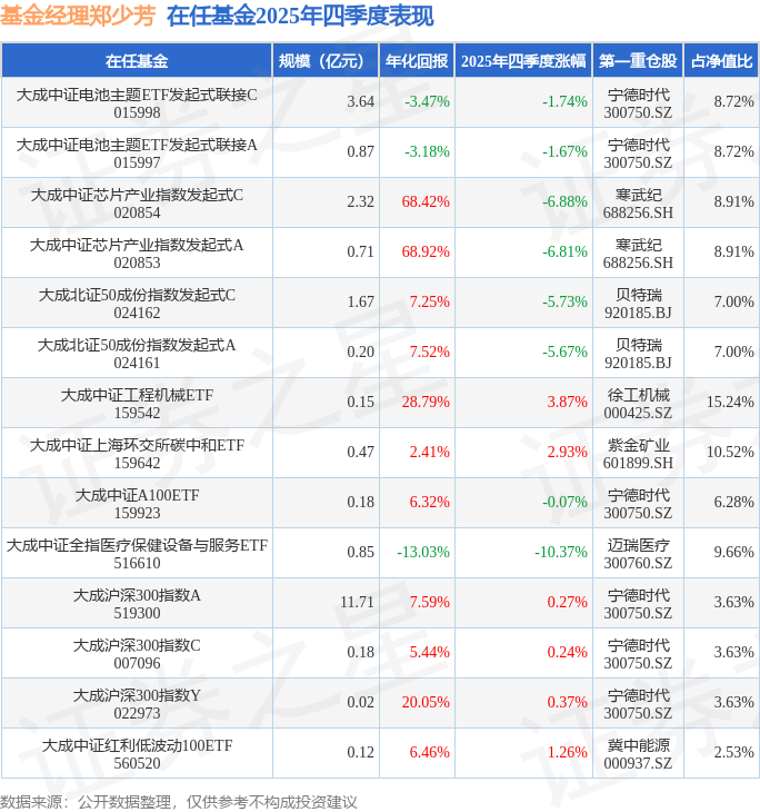 证券之星消息,日前大成中证全指医疗保健设备与服务ETF基金公布四季报,2025年四季度最新规模0.85亿元,季度净值涨幅为-10.37%。